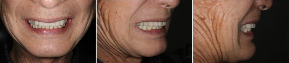 すべての治療が終了し、「歯がボロボロで入れ歯ではうまく噛めない」という主訴が改善され、「ちゃんと噛める」「見た目も綺麗」な状態になって、ものすごく嬉しいという声を頂きました。